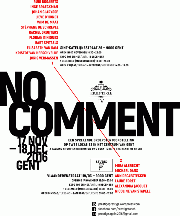 NO COMMENT, a talking group exhibition in an eighteenth century ballroom and at the hairdresser’s in the heart of Ghent, opens for the first time its doors in the autumn of 2016.
