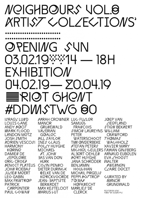 Invited artists : Israel Lund, Louis Cane, Andy Boot, Mark Flood, Landon Metz, Josh Smith, Adrien Vescosi, Harmony Korine, Damien De Lepeleire, Eric Croes, Benoit Platéus, John Roebas, Julien Meert, Leo Gabin, Max Frintrop, Patrick Carpentier, Paul Cowan, Sarah Crowner, Manor Grunewald, Valerian Goalec, Bill Saylor, Ines Claus, Polly Huyghe, Michael St. John, Bas Van Den Hurk, Colin Penno, Dieter Durinck & Elke Van De Kerckvoorde, Jean-Baptiste Bernadet, Max Kesteloot, Marius Lut, Luc Fuller, Samuel Francois, Simon Laureyns, Peter Waterschoot, Tim Onderbeke, Stefan Peters, Michiel Ceulers, Albert Oehlen, Bert Huyghe, Jana Schröder, Benjamin Houlihan, Michael Pirgelis, Peppi Bottrop, Tobias Hofknecht, Joep Van Liefland, Stien Bekaert, William Crawford, Thomas Wachholz, Xavier Mary, Fabian Ginsberg, Arnaud Eubelen, Eva L’Hoest, Walter Swennen.